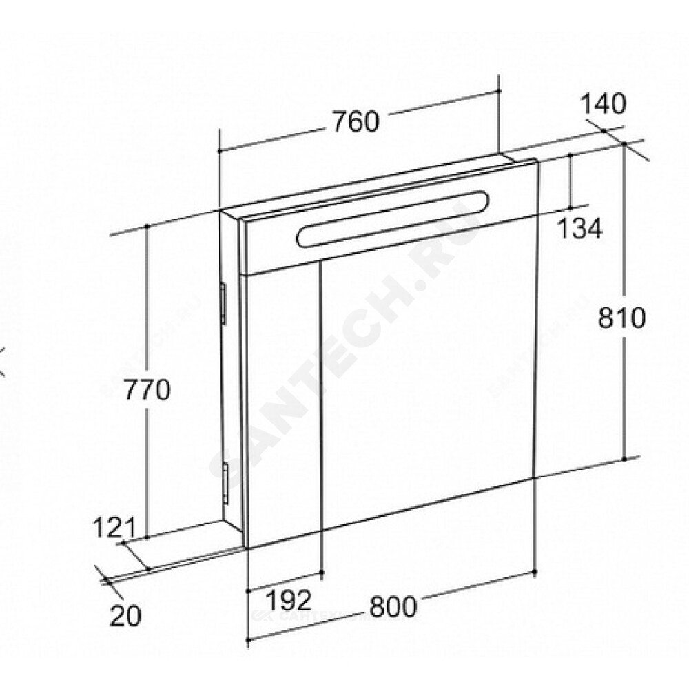 Зеркальные створки с доводом - 2 шт., светильник LLA 20W(6500К), полка стеклянная - 3 шт.