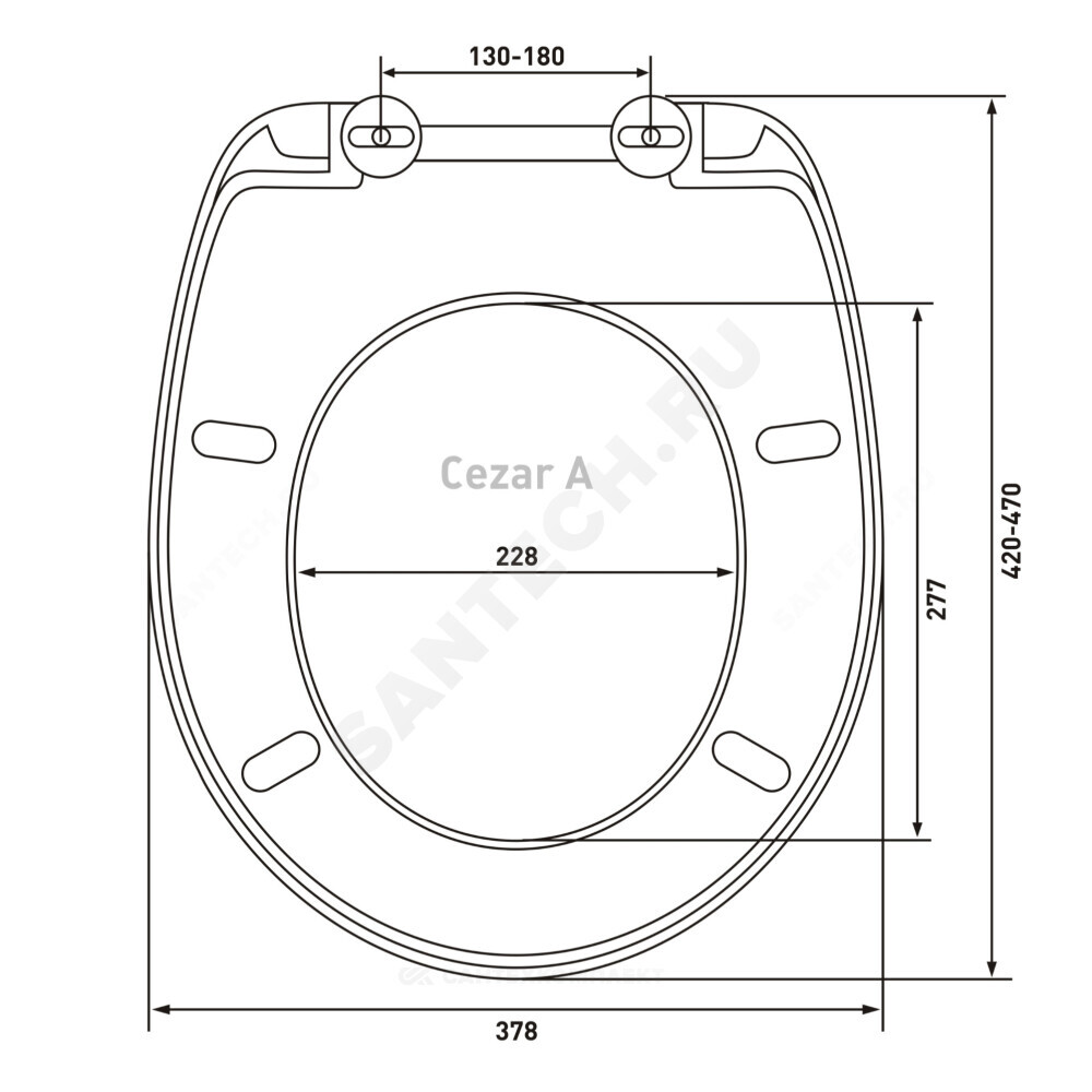 Сиденье Cezar A изготовлено из высококачественного безопасного материала дюропласт. Дюропласт обладает высокой степенью прочности прекрасно выдерживает удары не реагирует на воздействие красителей имеет глянцевый блеск Форма сиденья: округлая. Сиденье имеет долгий срок службы за счёт современных способов производства и обработки материалов. Крепление металлические, с возможностью регулировки по длине.