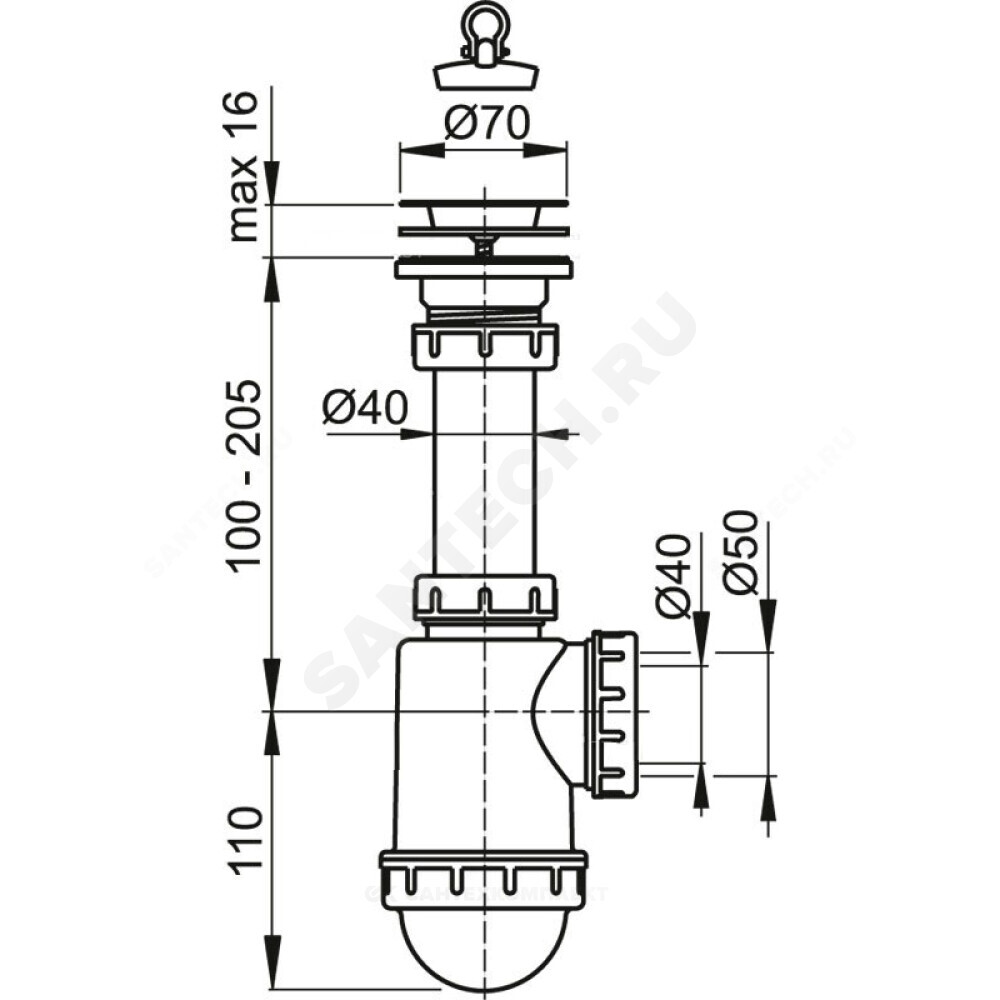 Корпус сифона Пробка из ПВХ Сливная решетка из нержавеющей стали