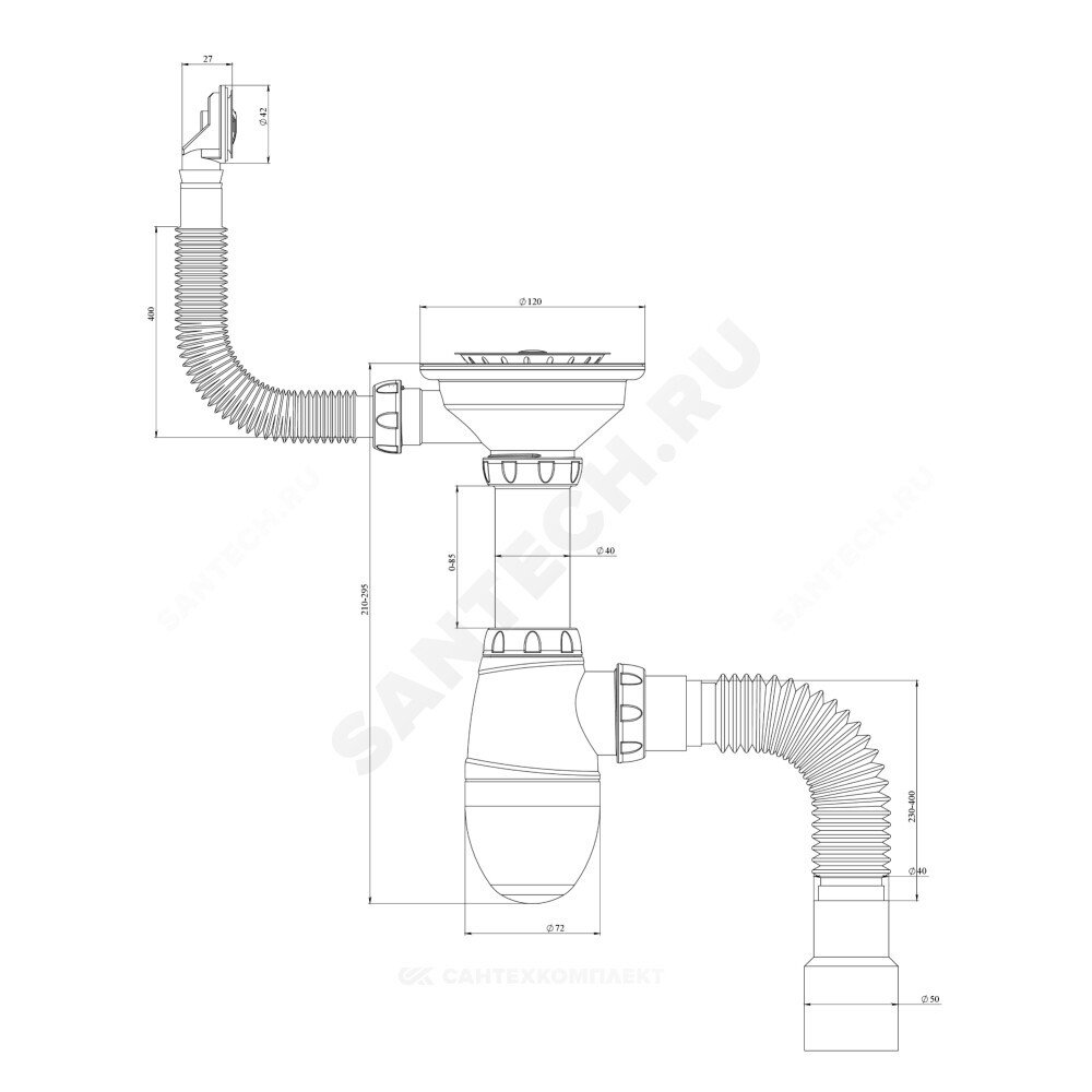 Подключение к канализации, мм