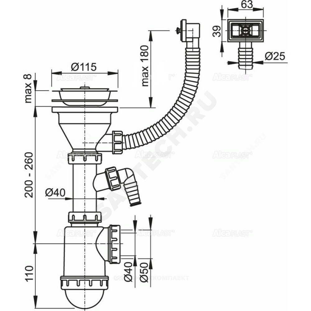Корпус сифона со штуцером и переливом Пробка из нержавеющей стали Сливная решетка из нержавеющей стали