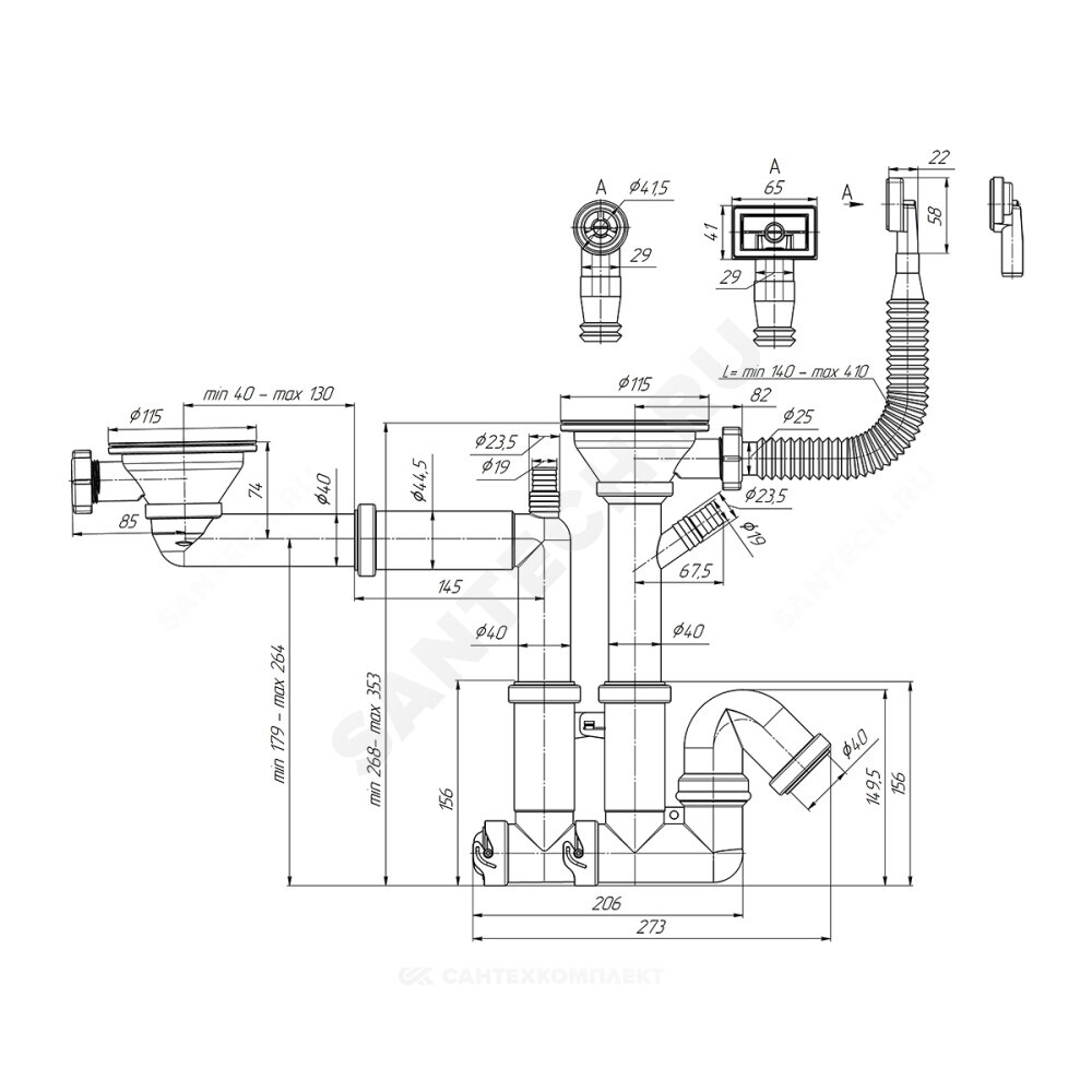 Выход для подключения к канализации, мм