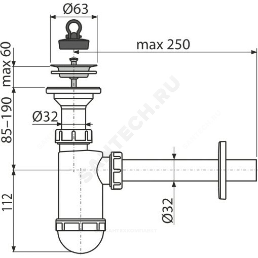 Выход для подключения к канализации, мм