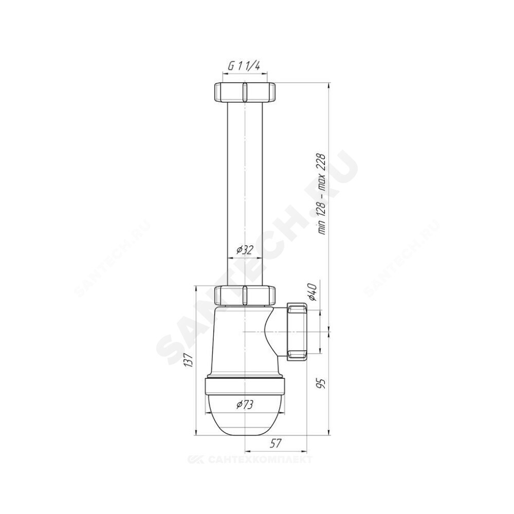 Выход для подключения к канализации, мм