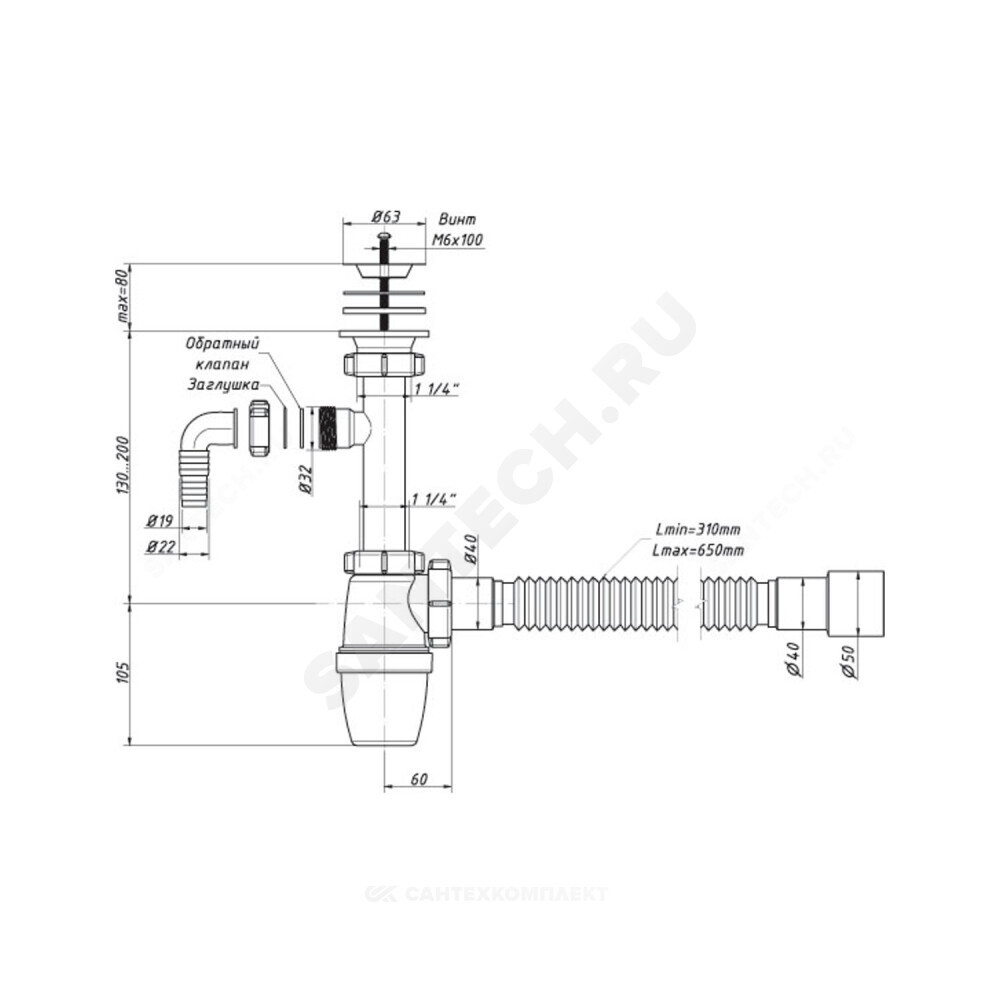 Подключение к канализации, мм