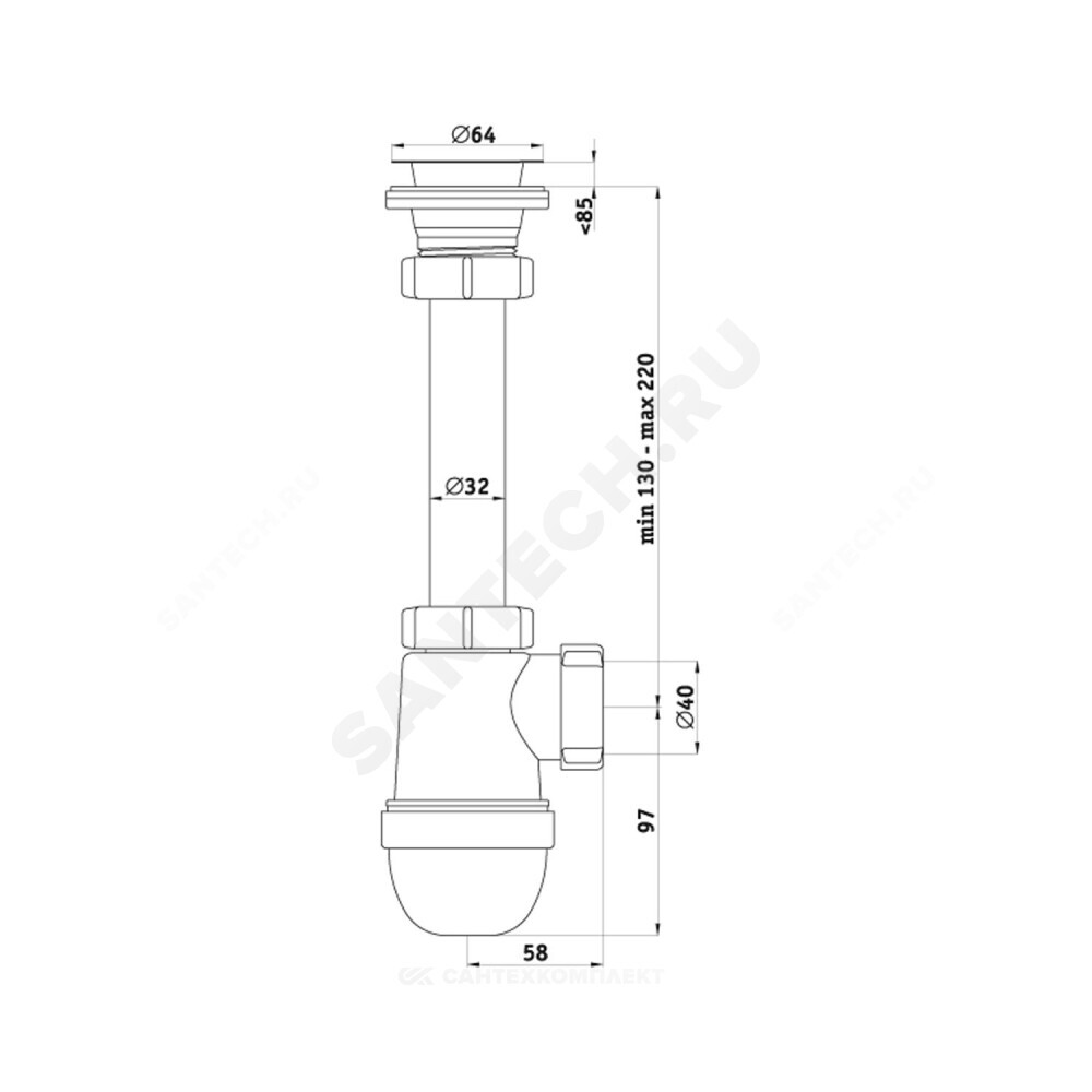Выход для подключения к канализации, мм