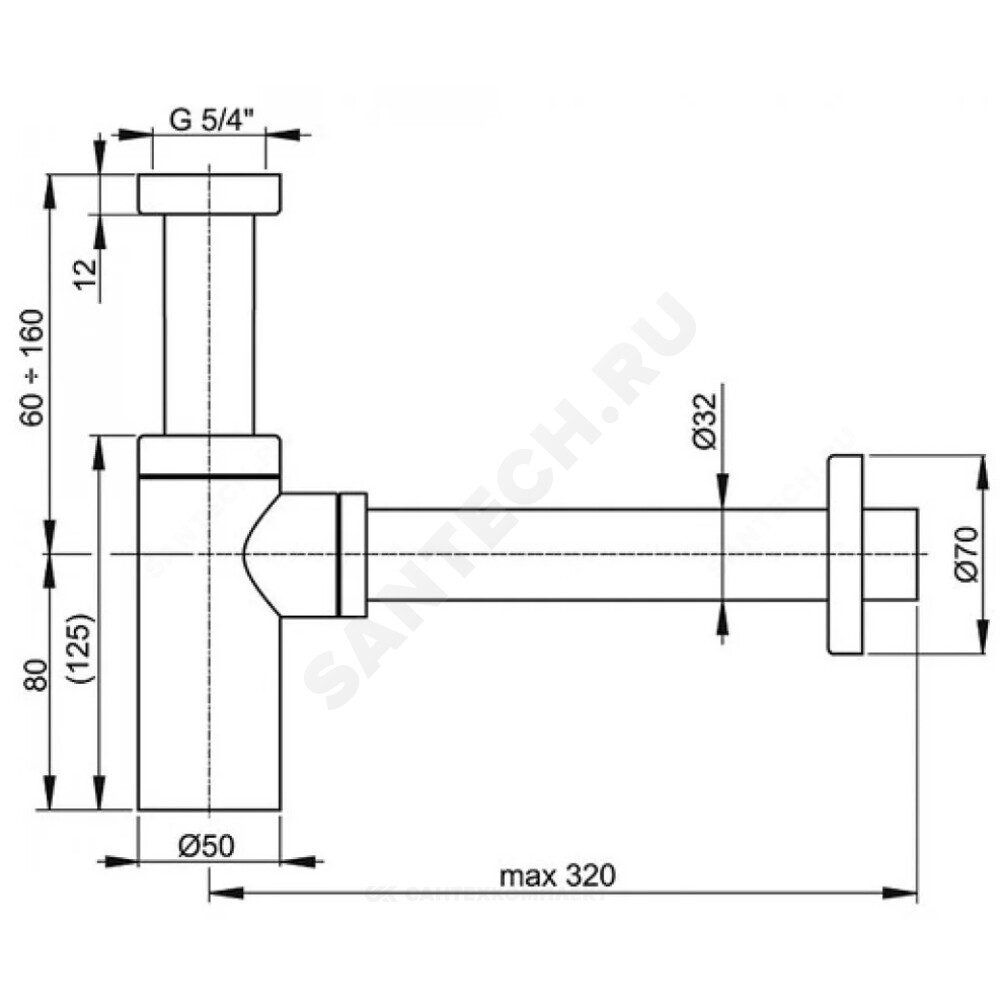 Корпус сифона встроенного в стену Резьбовое соединение 5/4" для подключения слива раковины или биде Обрамление металлическое