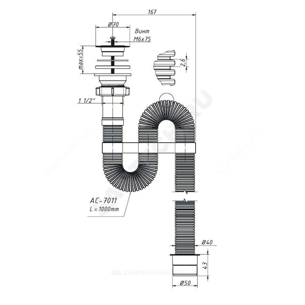 Подключение к канализации, мм
