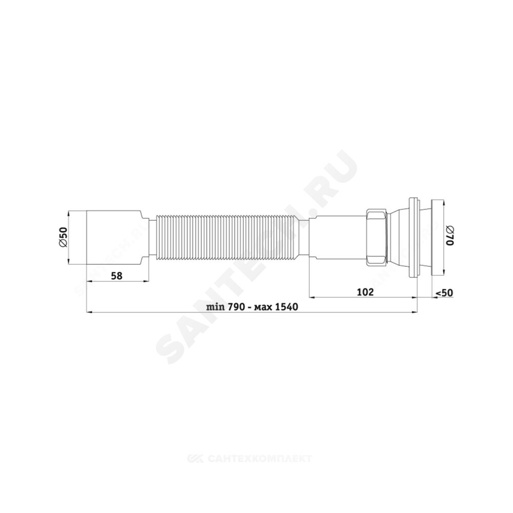 Выход для подключения к канализации, мм