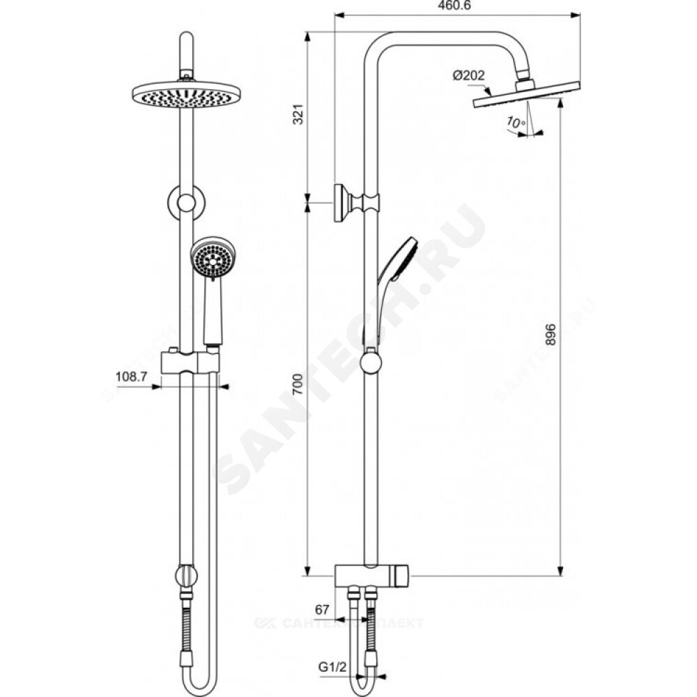стационарная штанга, душ верхний, шланг, держатель, лейка для душа