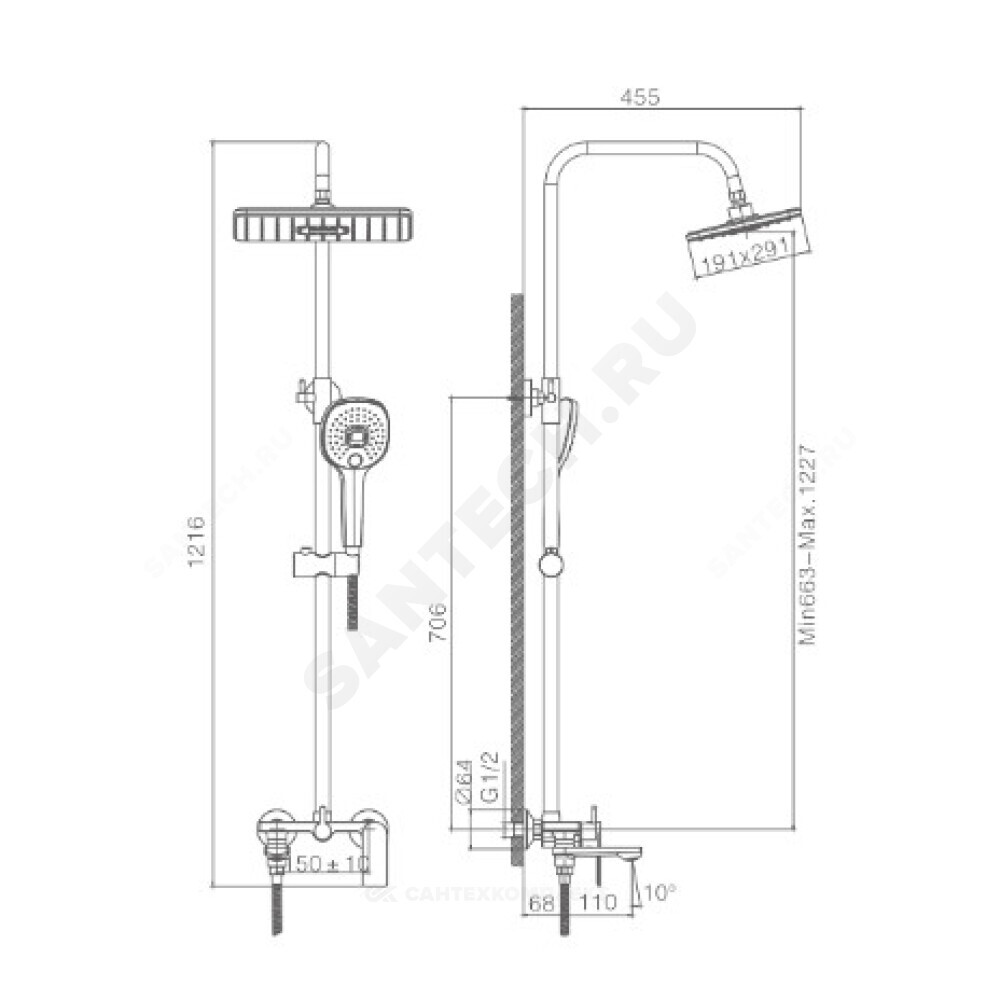 стационарная штанга, душ верхний, шланг, держатель, лейка для душа