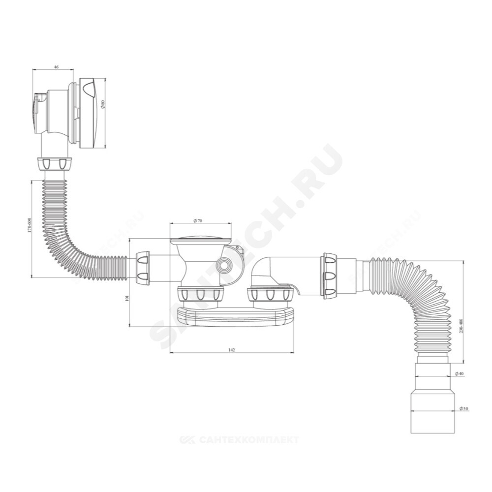 Подключение к канализации, мм