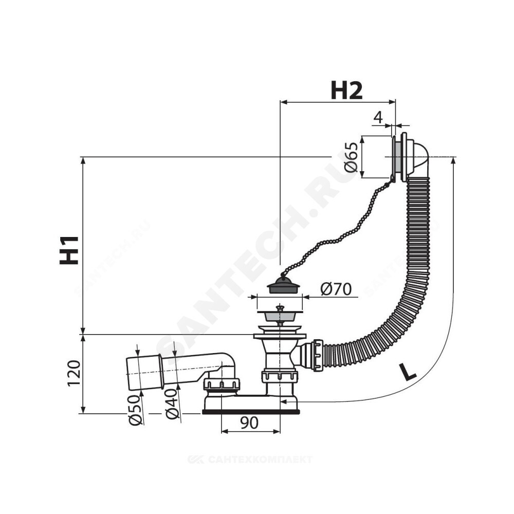 Корпус сифона с системой перелива Хромированная пластиковая решетка перелива Пробка из ПВХ на цепочке Хромированная решетка слива из нержавеющей стали Гидрозатвор сифона из полипропилена, сваренный ультразвуковым методом, устойчив к термическим и химическим воздействиям Профильное уплотнение