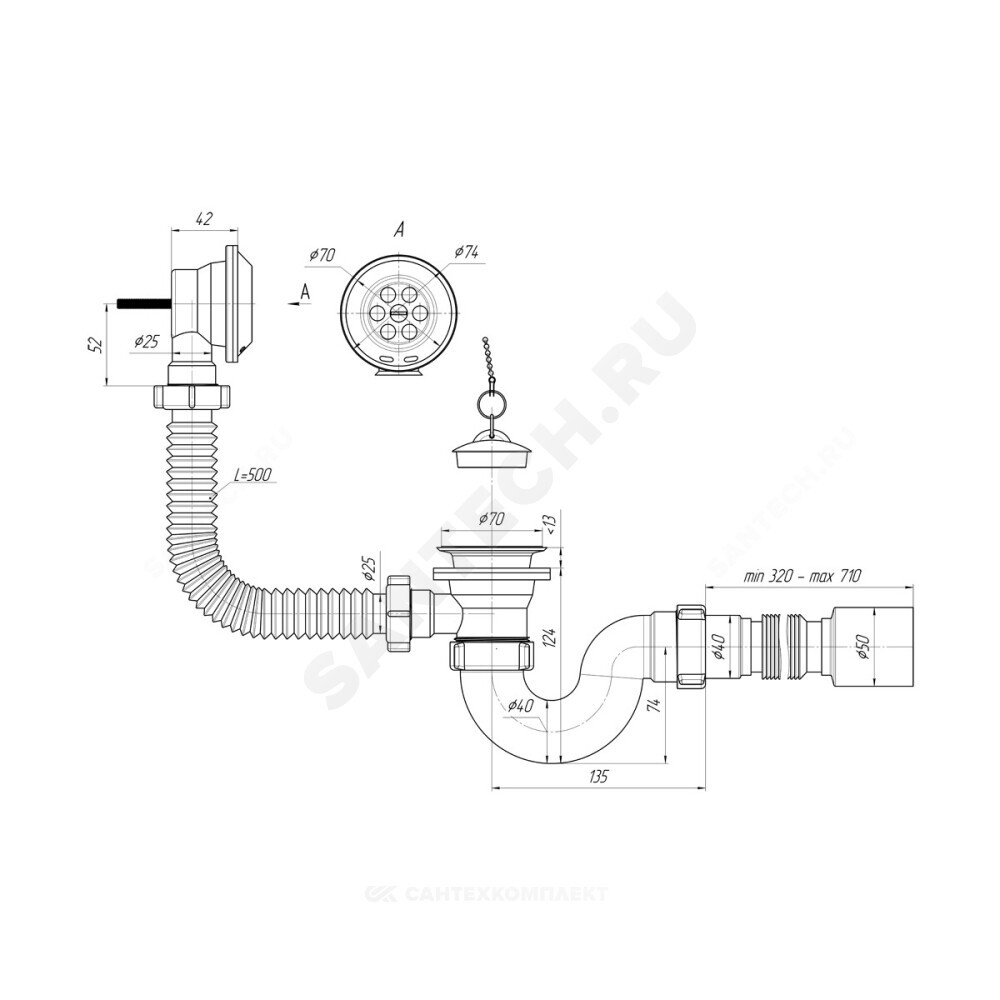 Подключение к канализации, мм