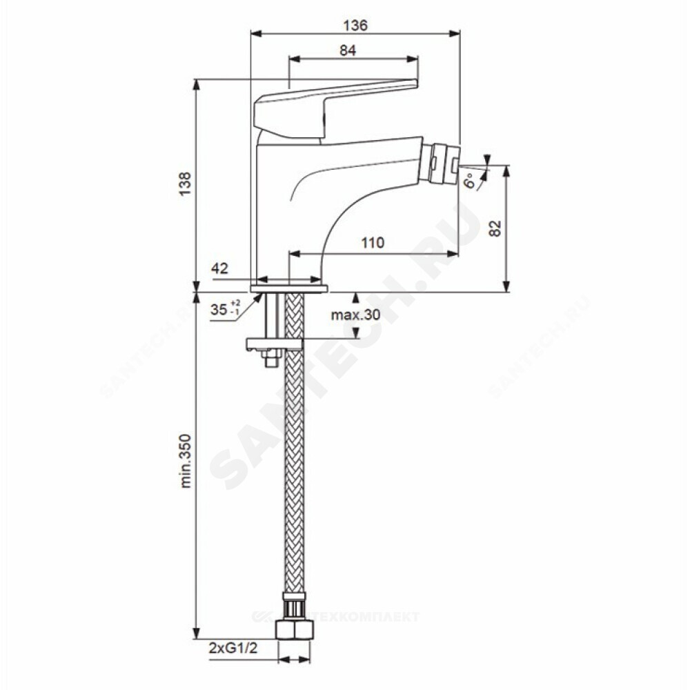 меситель, подводка гибкая 1/2", упаковка, паспорт