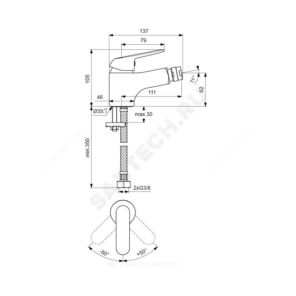 смеситель, подводка гибкая, крепежный комплект (шпилька с гайкой, пластина U-образная, прокладка U-образная, прокладка круглая), упаковка, паспорт