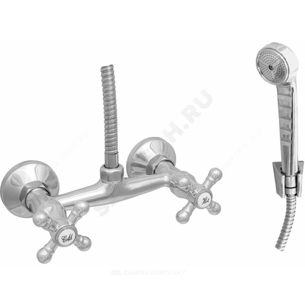 Смеситель для душа однорукояточный с подводками в раздельных отверстиях настенный с душевой сеткой на гибком шланге