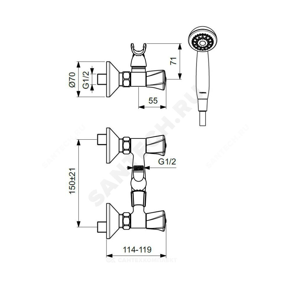 стоечка-телефончик, держатель настенный, шланг, лейка для душа