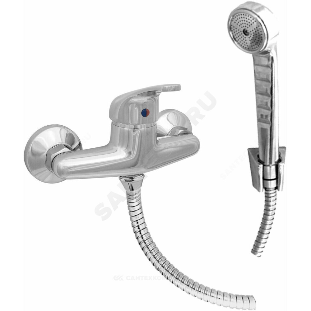 смеситель, душевой шланг, хром пласт.лейка, кронштейн