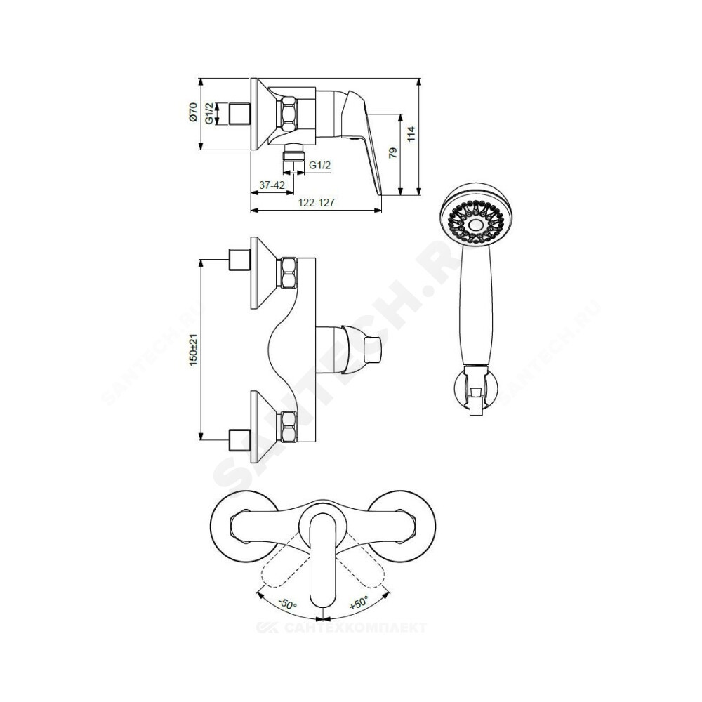 смеситель, шланг для душа, лейка для душа, держатель для лейки настенный, эксцентрики , отражатели, уплотнительные прокладки, упаковка, паспорт