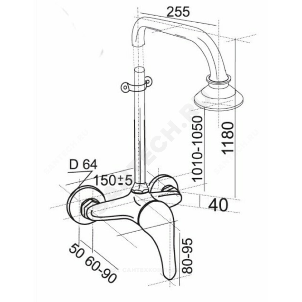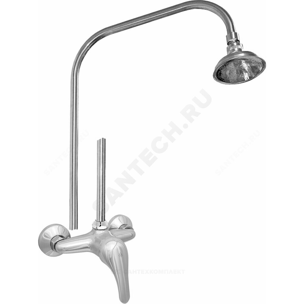 Смеситель для душа однорукояточный с подводками в раздельных отверстиях настенный с душевой сеткой на стационарной трубке