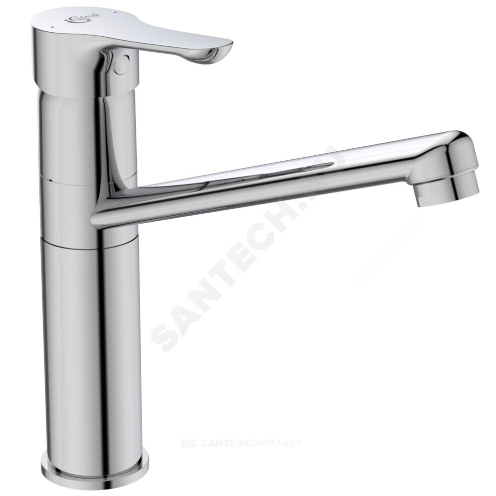 ALPHA Однорычажный смеситель для кухонной мойки трубчатый поворотный излив (длина 207 мм, высота 180 мм), угол поворота 360гр керамический картридж 38 мм Firmaflow с функцией HWTC (ограничение максимальной температуры горячей воды), с функцией CLICK (ограничение потока воды) гибкая подводка G3/8" система монтажа EASY-FIX (облегченный монтаж) с пластиковой опорной пластиной для более стабильного монтажа на мойке из нержавеющей стали аэратор Perlator металлическая рукоятка с индикаторами горячей / холодной воды