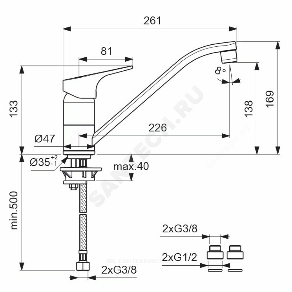 М10х1-G3/8", в комплекте переходник G3/8"-G1/2"