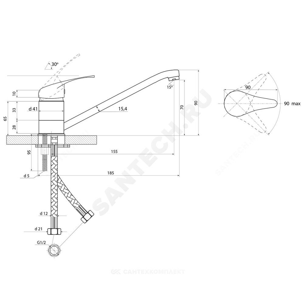 смеситель в сборе, подводка гибкая М10-1/2" L=400мм (пара), упаковка, паспорт