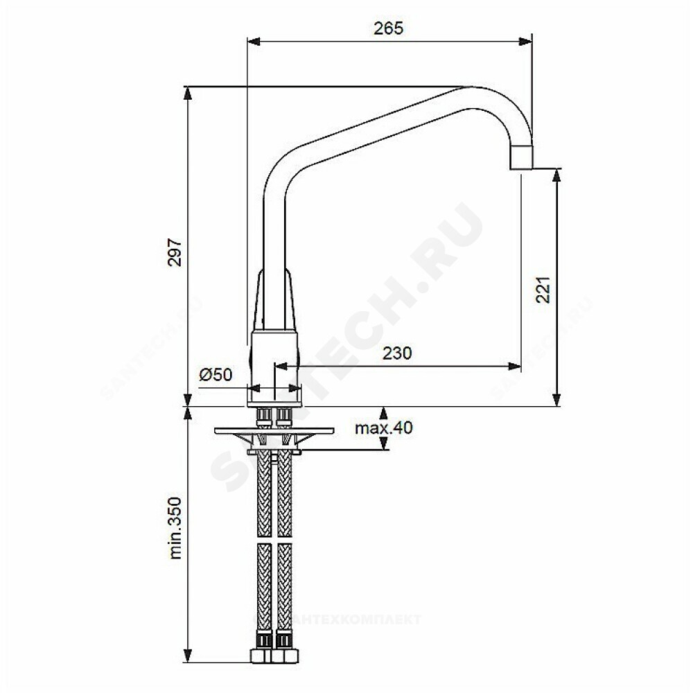смеситель, подводка гибкая, крепежный комплект (шпилька с гайкой, пластина U-образная, пластиковая монтажная накладка StrongFix, прокладка круглая), упаковка, паспорт