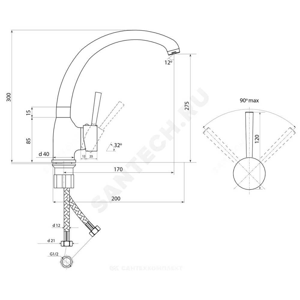 смеситель в сборе, подводка гибкая М10-1/2" L=400мм (пара), упаковка, паспорт