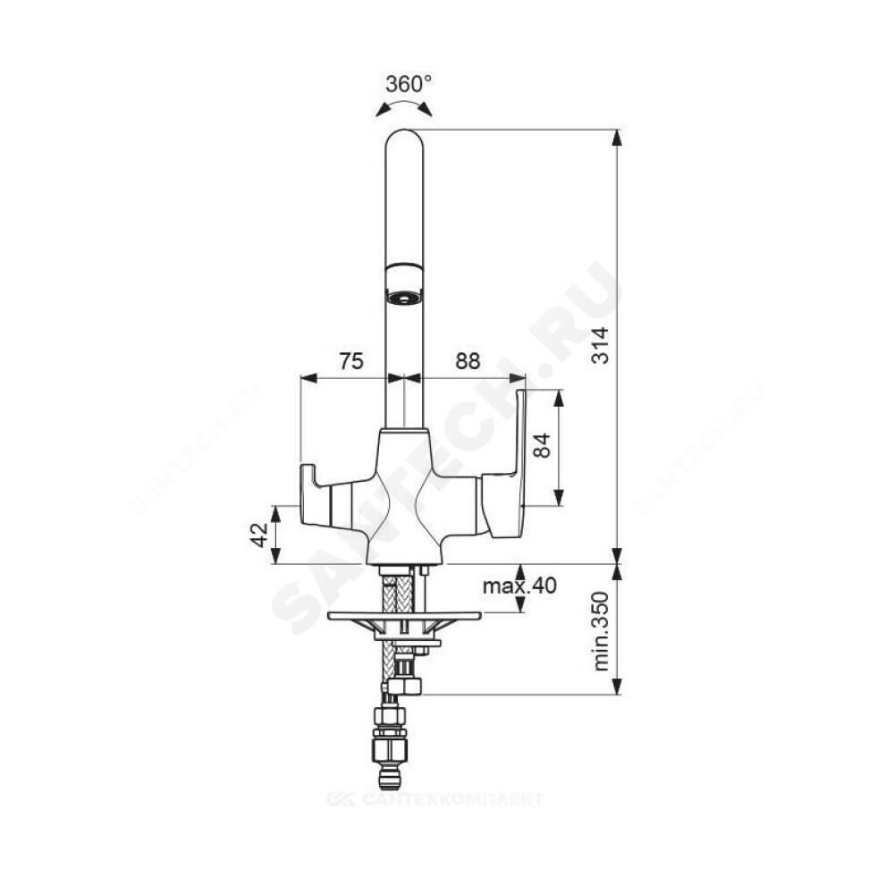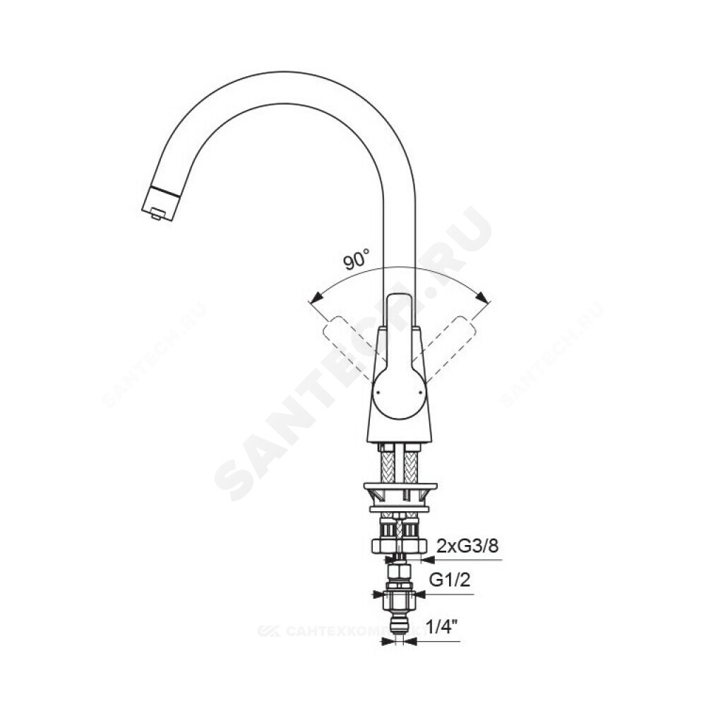 смеситель, подводка гибкая, крепежный комплект (шпилька с гайкой, пластина U-образная, пластиковая монтажная накладка StrongFix, прокладка круглая), упаковка, паспорт