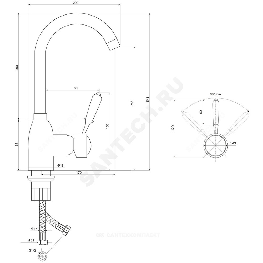 смеситель в сборе, подводка гибкая М10-1/2" L=400мм (пара), упаковка, паспорт