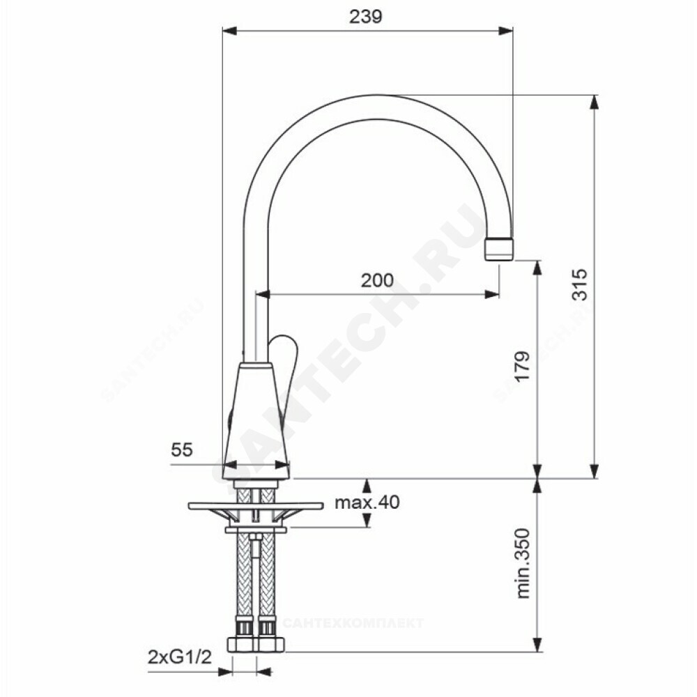 смеситель, подводка гибкая, крепежный комплект (шпилька с гайкой, пластина U-образная, пластиковая монтажная накладка StrongFix, прокладка круглая), упаковка, паспорт