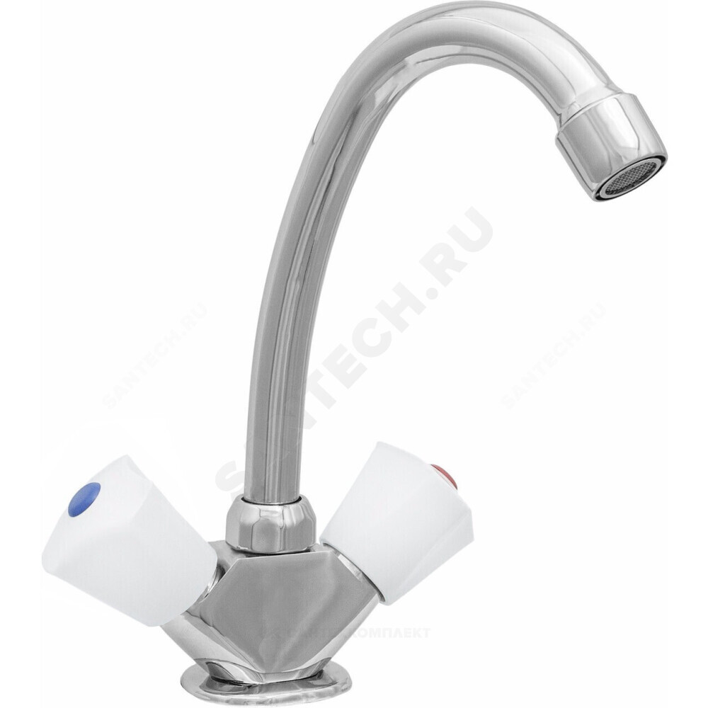 Смеситель для умывальника и мойки двухрукояточный центральный набортный