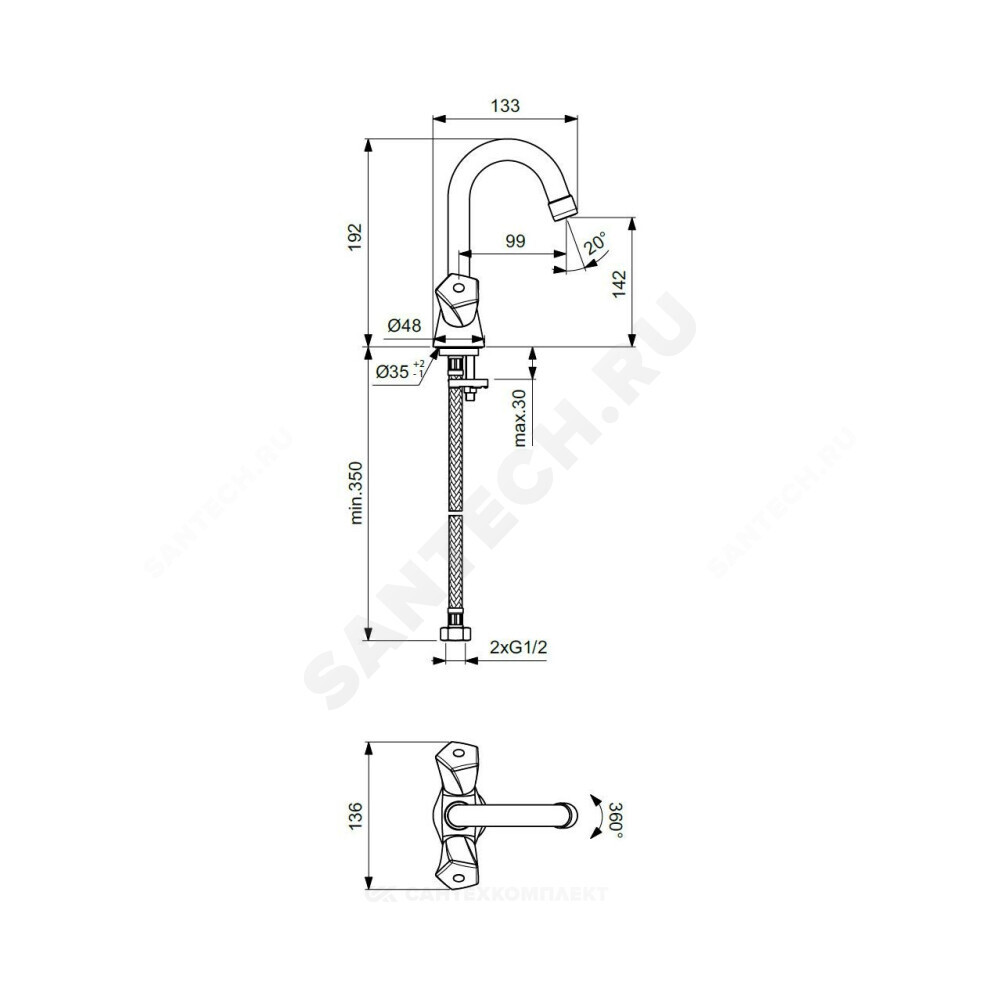 смеситель, подводка гибкая 1/2", упаковка, паспорт
