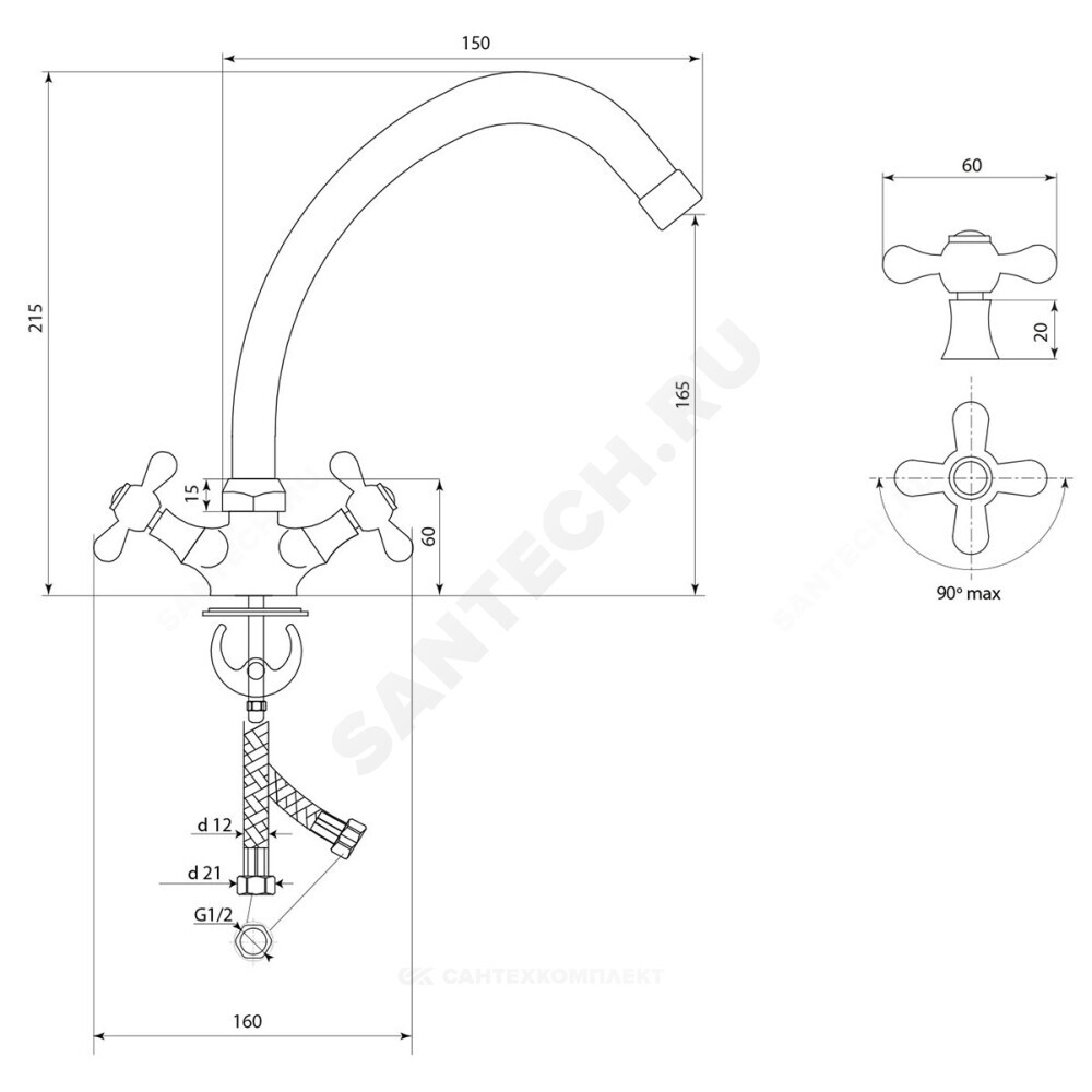 смеситель в сборе, подводка гибкая М10-1/2" L=400мм (пара), упаковка, паспорт