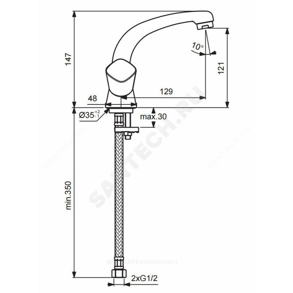 смеситель, подводка гибкая 3/8"+переходник на 1/2", упаковка, паспорт
