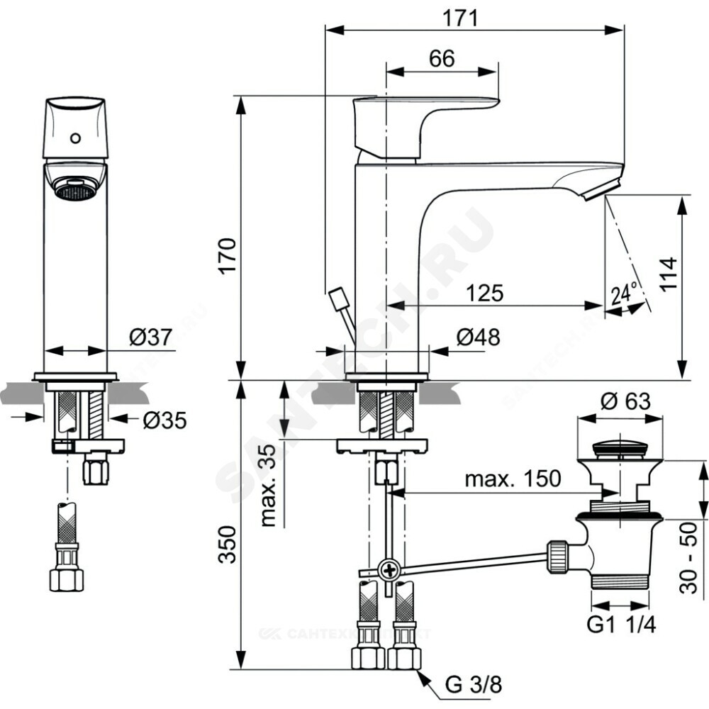 смеситель крепежный комплект донный клапан 1 1/4" подводка гибкая - пара упаковка паспорт