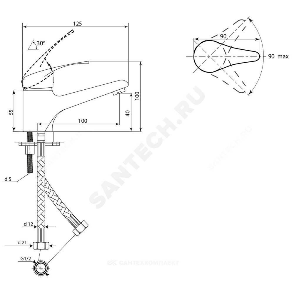смеситель в сборе, подводка гибкая М10-1/2" L=400мм (пара), упаковка, паспорт