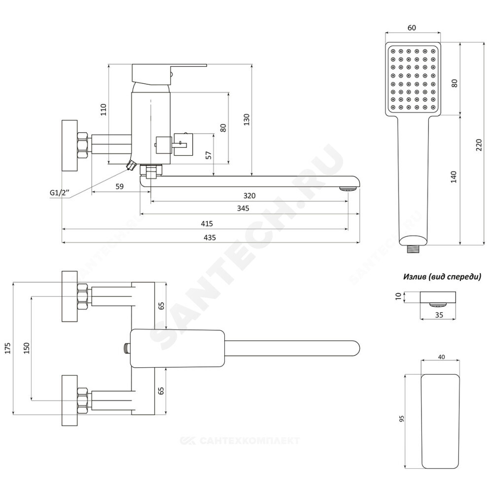 держатель настенный, шланг, лейка для душа