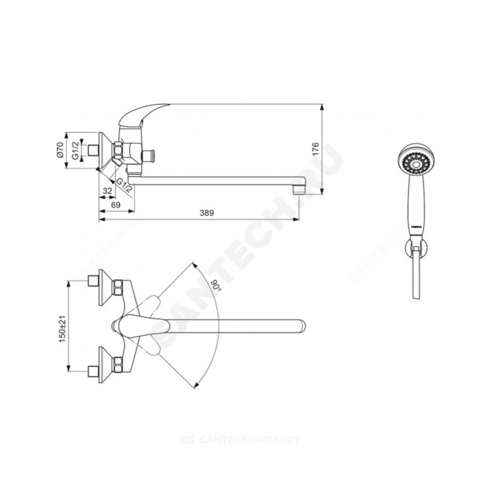 смеситель, шланг для душа, лейка для душа, держатель для лейки настенный, эксцентрики , отражатели, уплотнительные прокладки, упаковка, паспорт