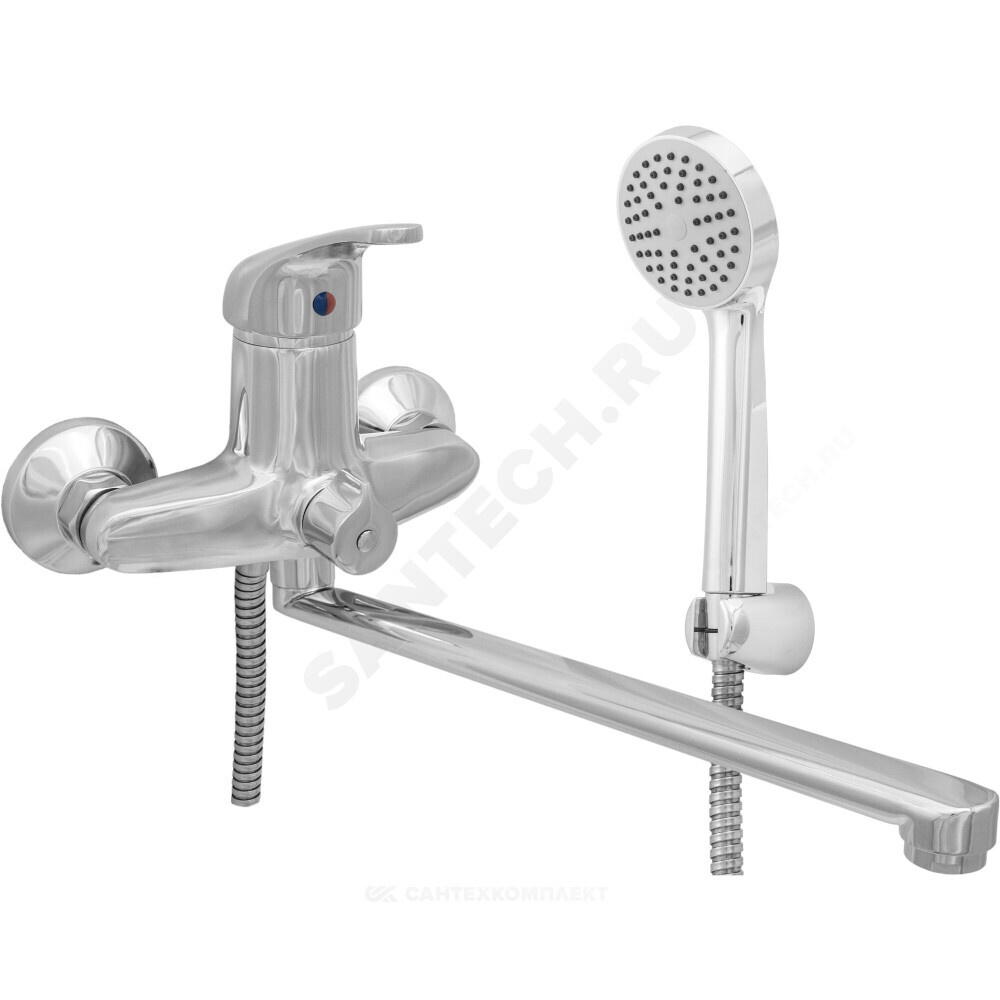 Смеситель общий для ванны и умывальника однорукояточный с подводками в раздельных отверстиях настенный с душевой сеткой на гибком шланге
