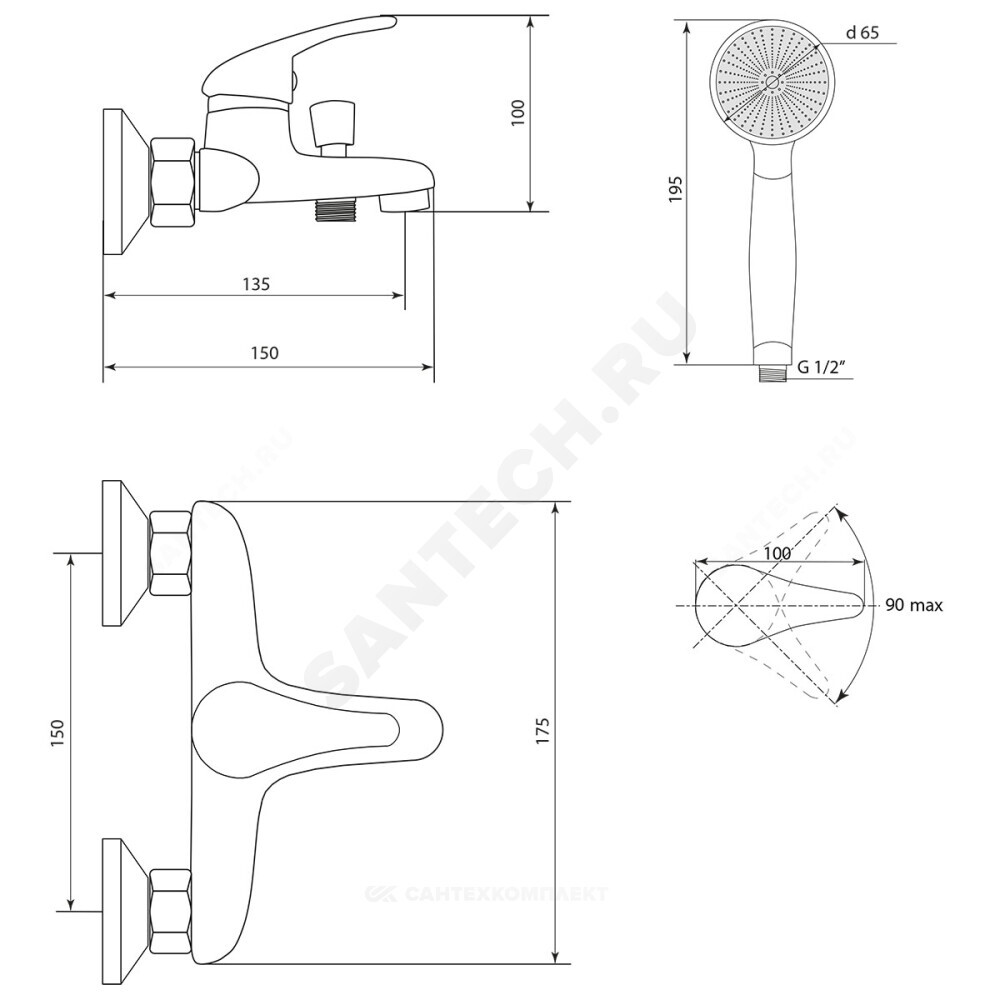 держатель настенный, шланг, лейка для душа