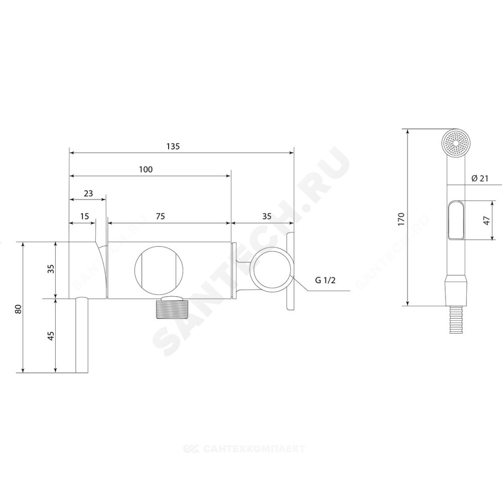 держатель на корпусе, шланг, душ гигиенический
