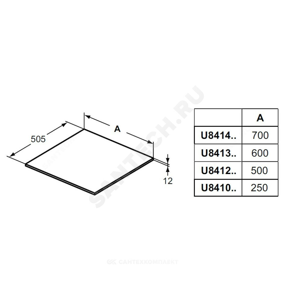 ADAPTO Столешница 50 см без выреза, с крепежом