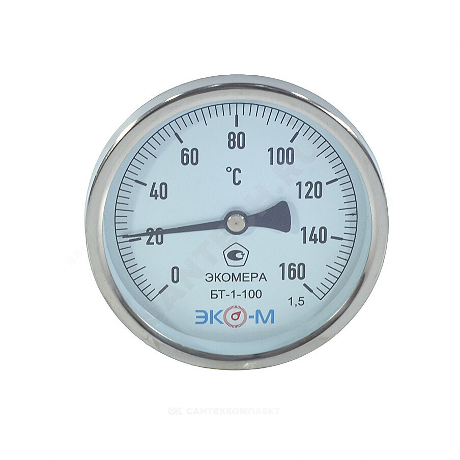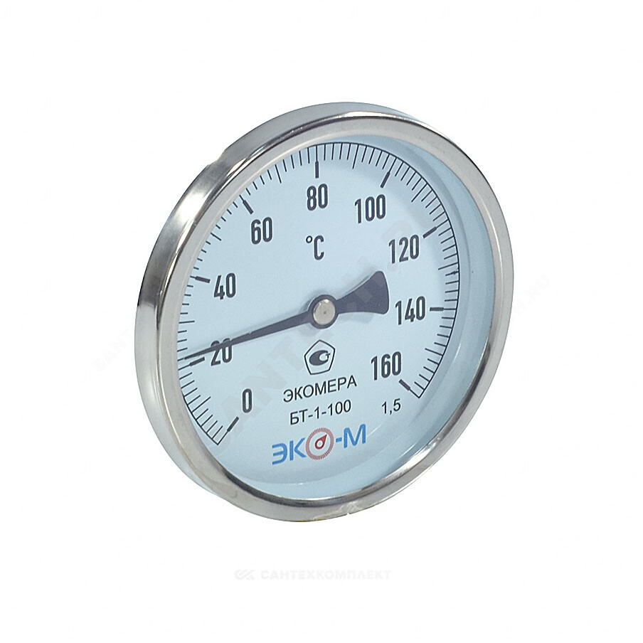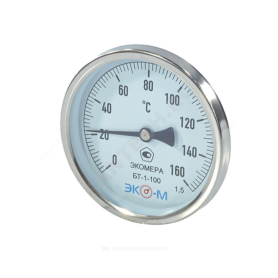 Термометр биметаллический осевой Дк100 160С L=60мм G1/2" БТ-1-100 ЭКОМЕРА БТ-1-100-160С-L60