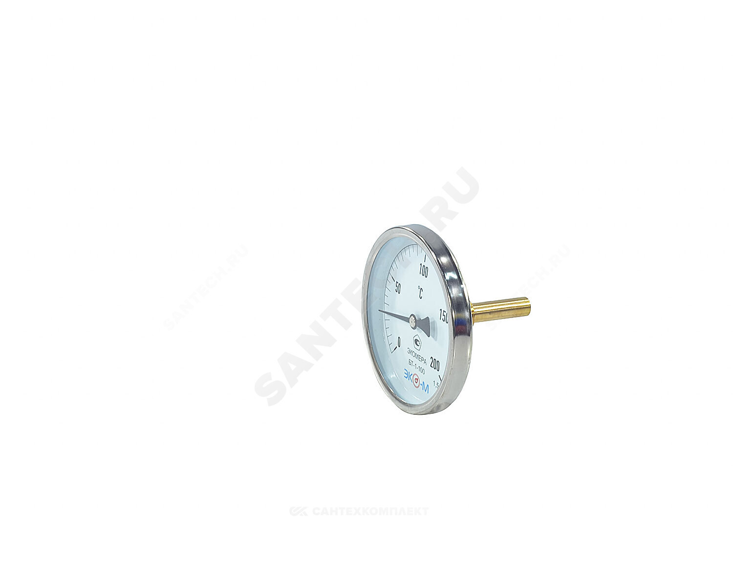 Термометр биметаллический осевой Дк100 200С L=100мм БТ-1-100 ЭКОМЕРА БТ-1-100-200С-L100