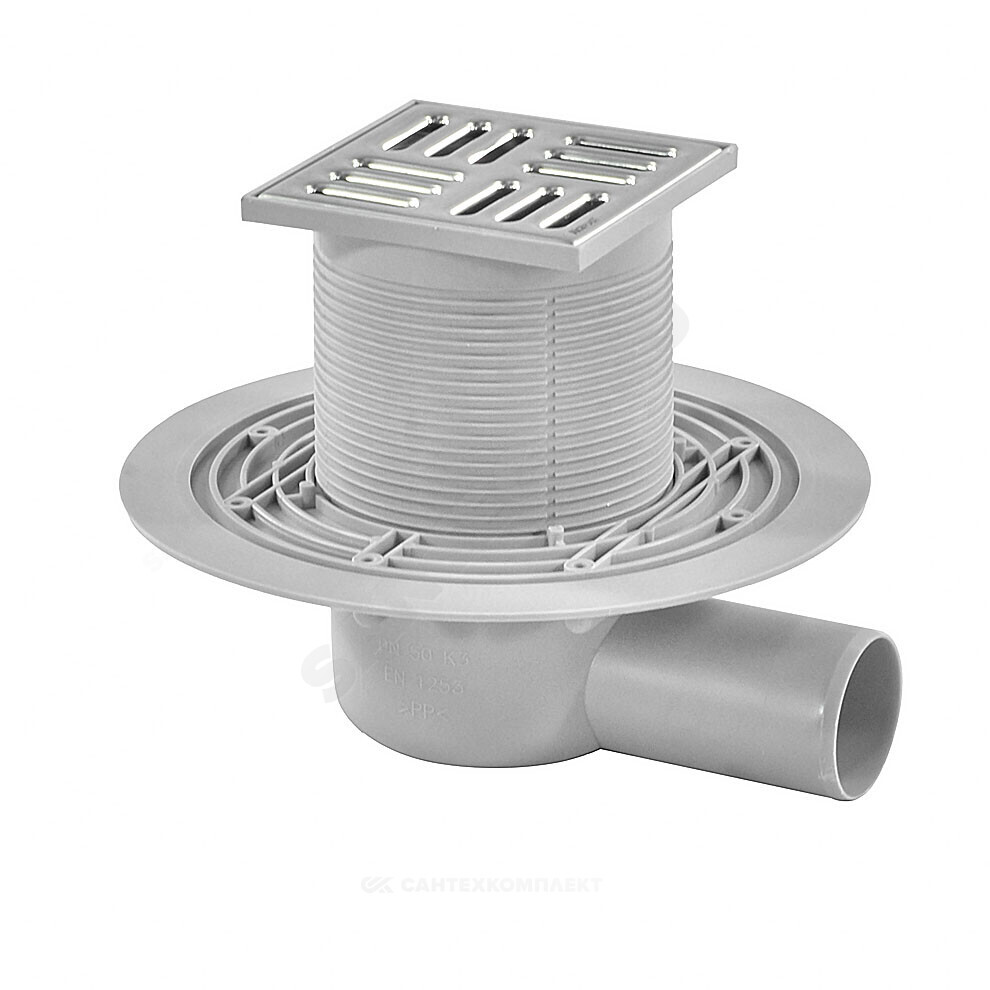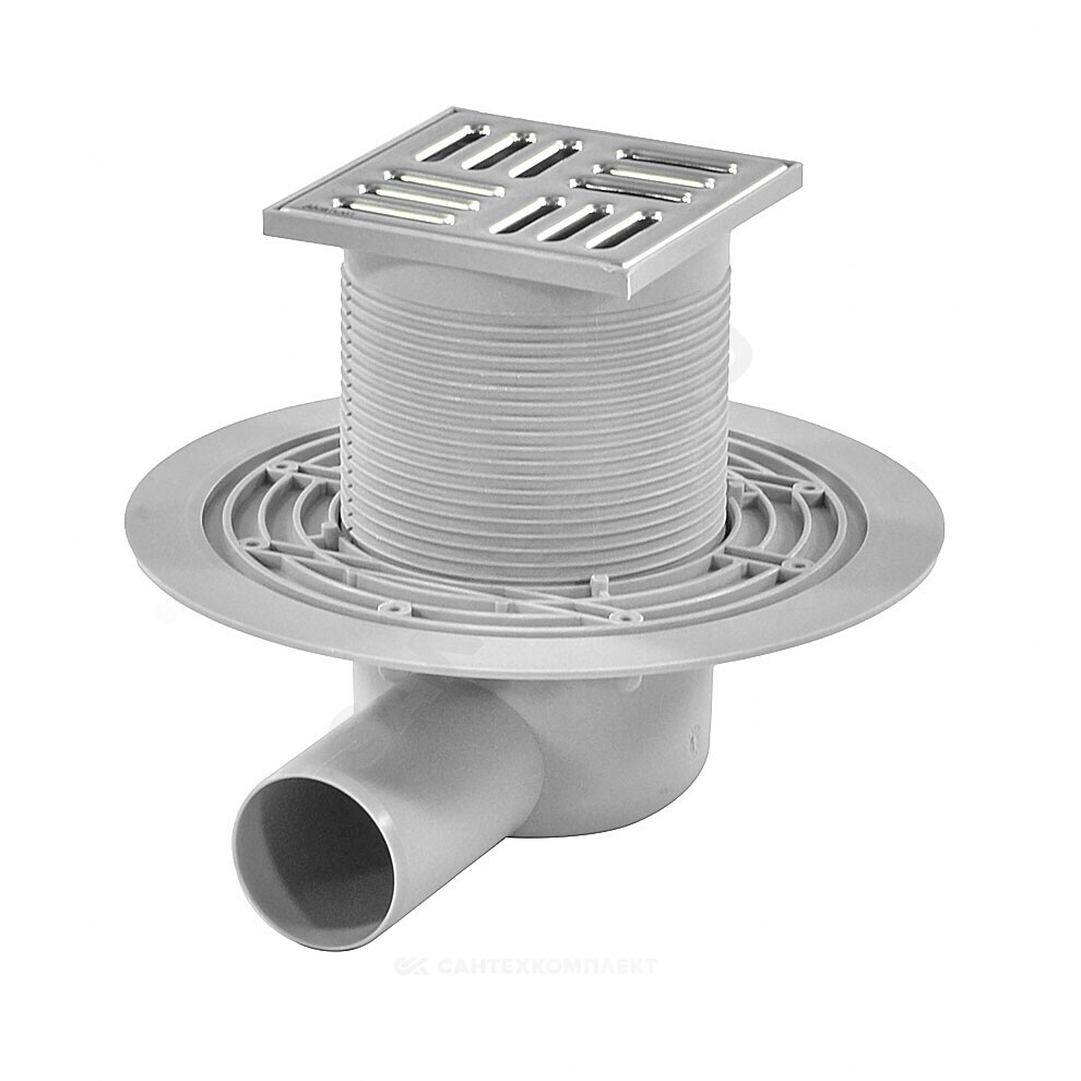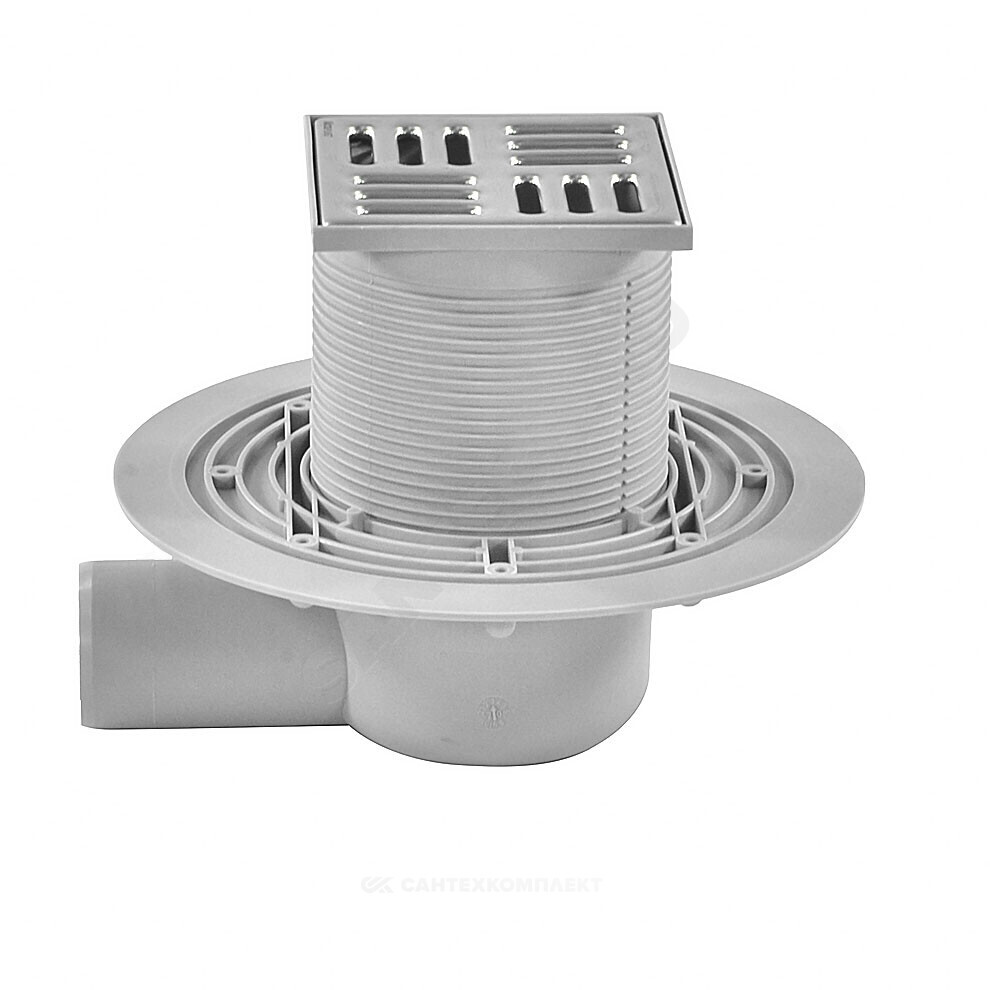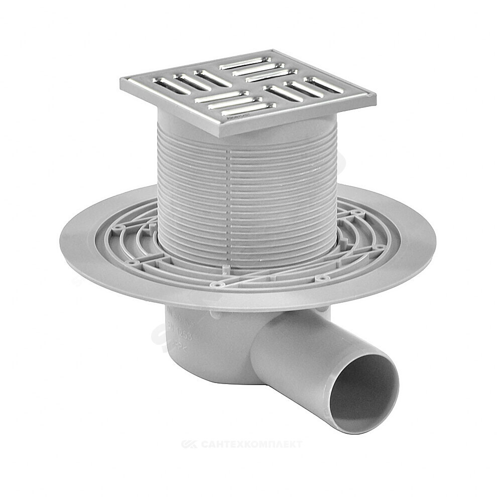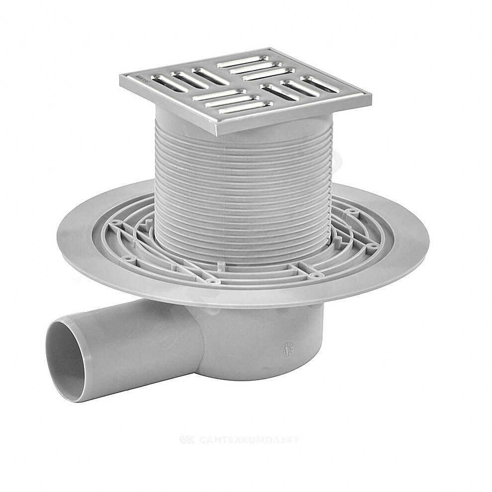 Корпус сливного трапа с боковым подключением к стоку Д 50 Горловина сливного трапа 105х105 мм Решетка из нержавеющей стали Мокрый гидрозатвор Комплект прокладок
