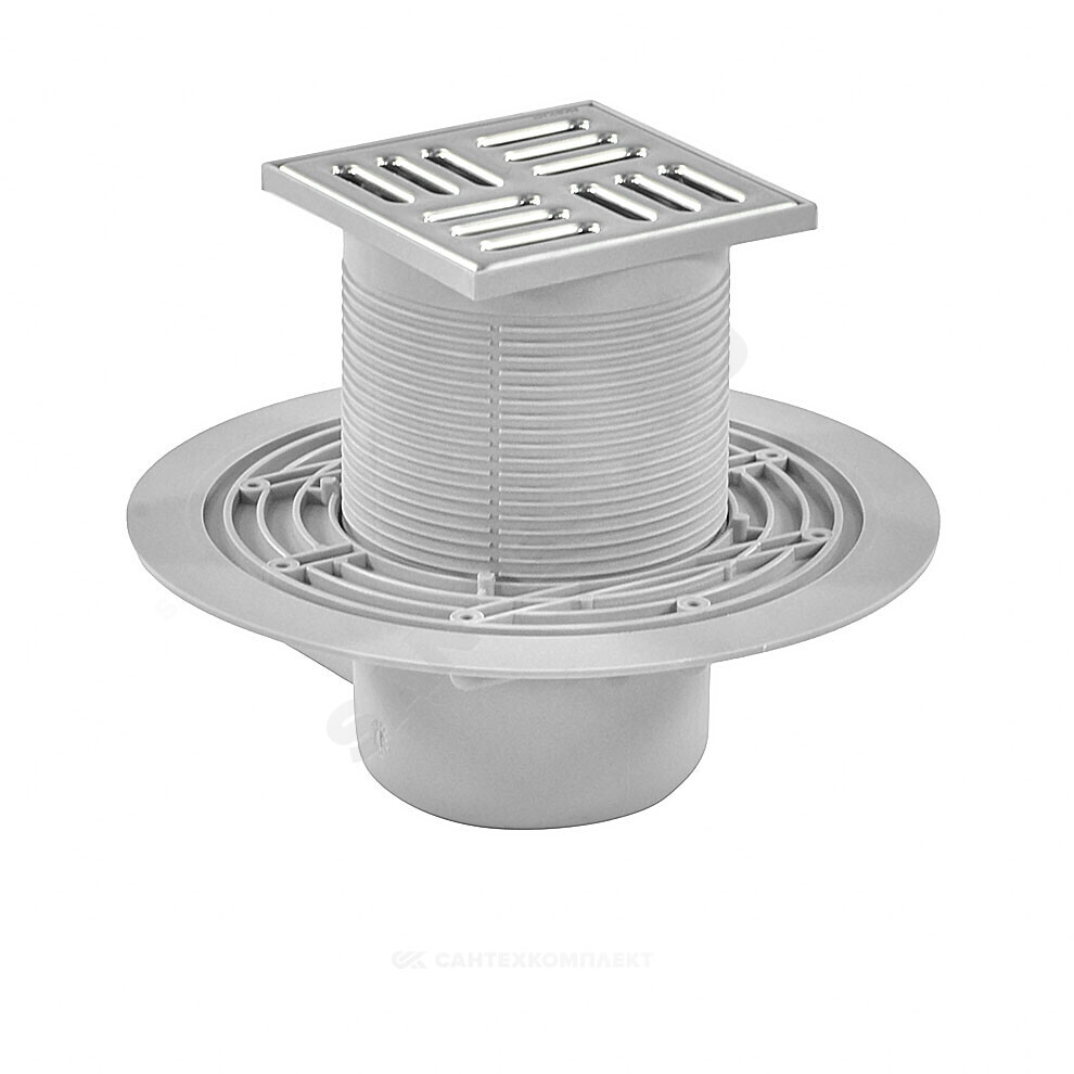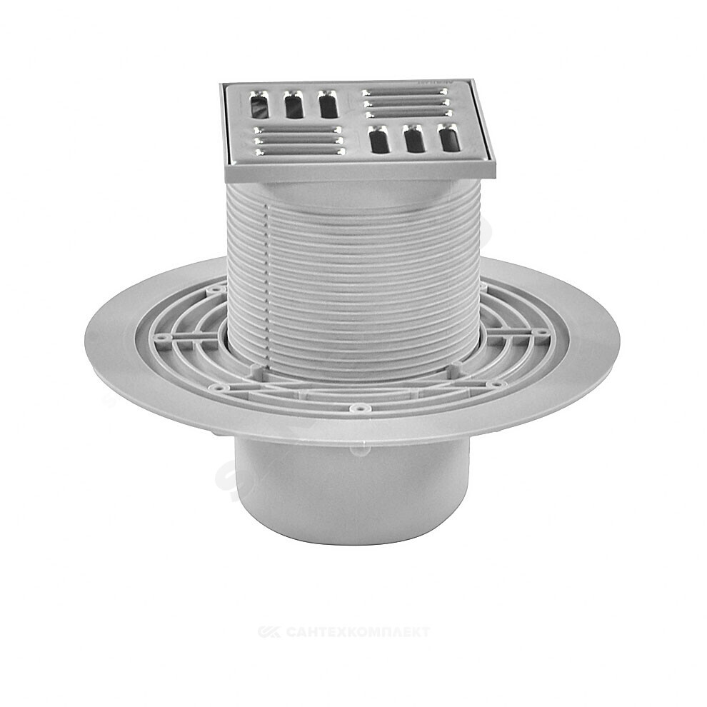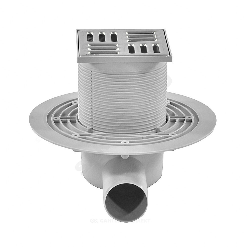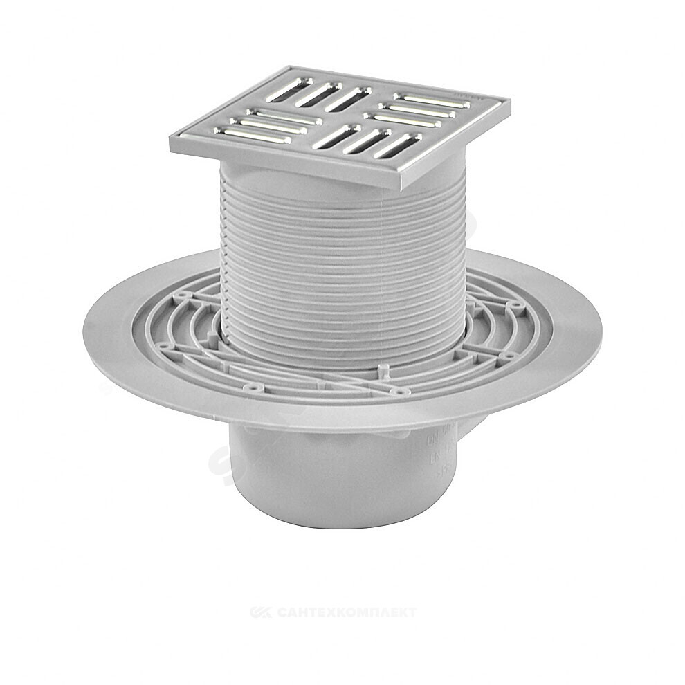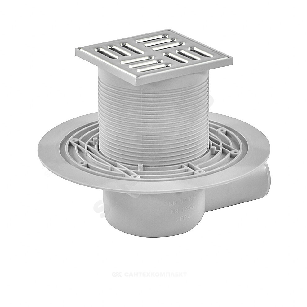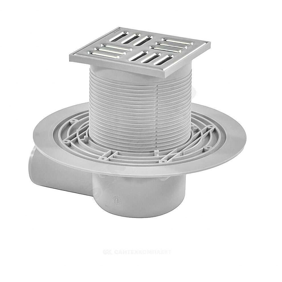 Корпус сливного трапа с боковым подключением к стоку Д 50 Горловина сливного трапа 105х105 мм Решетка из нержавеющей стали Мокрый гидрозатвор Комплект прокладок