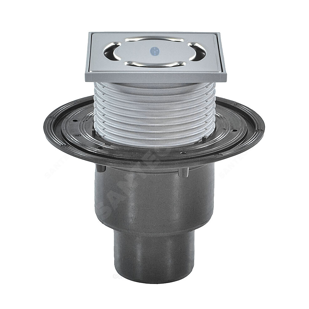 Трап полипропиленовый с решёткой из нержавеющей стали, монтажные заглушки